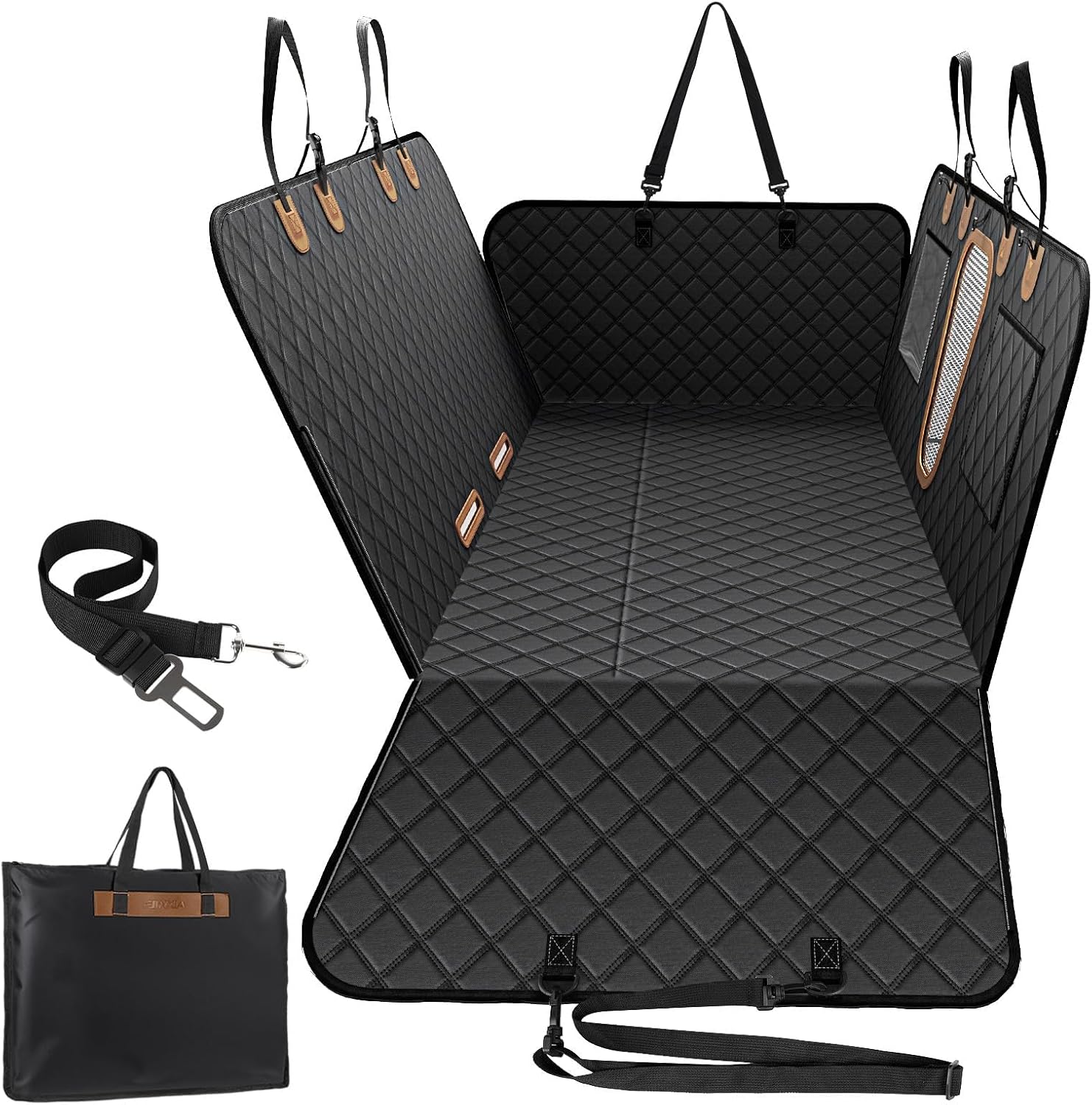 🐕【Reinforced Stability】Multiple accessories, such as PVE nonslip underside, side flap metal buckles, seal zipper, seat anchors, and Velcro opening for safety belts, provide maximum stability and safety for your pet during car rides.
