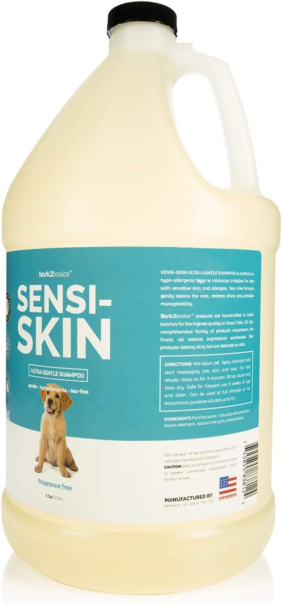 Bark2Basics Sensi-Skin Hypoallergenic Dog Shampoo, 1 Gallon, All Natural Ingredients, Sensitive Skin Pet Shampoo, Gentle, No Fragrance, Non-Irritating, For Dogs with Allergies and Dry, Itchy Skin