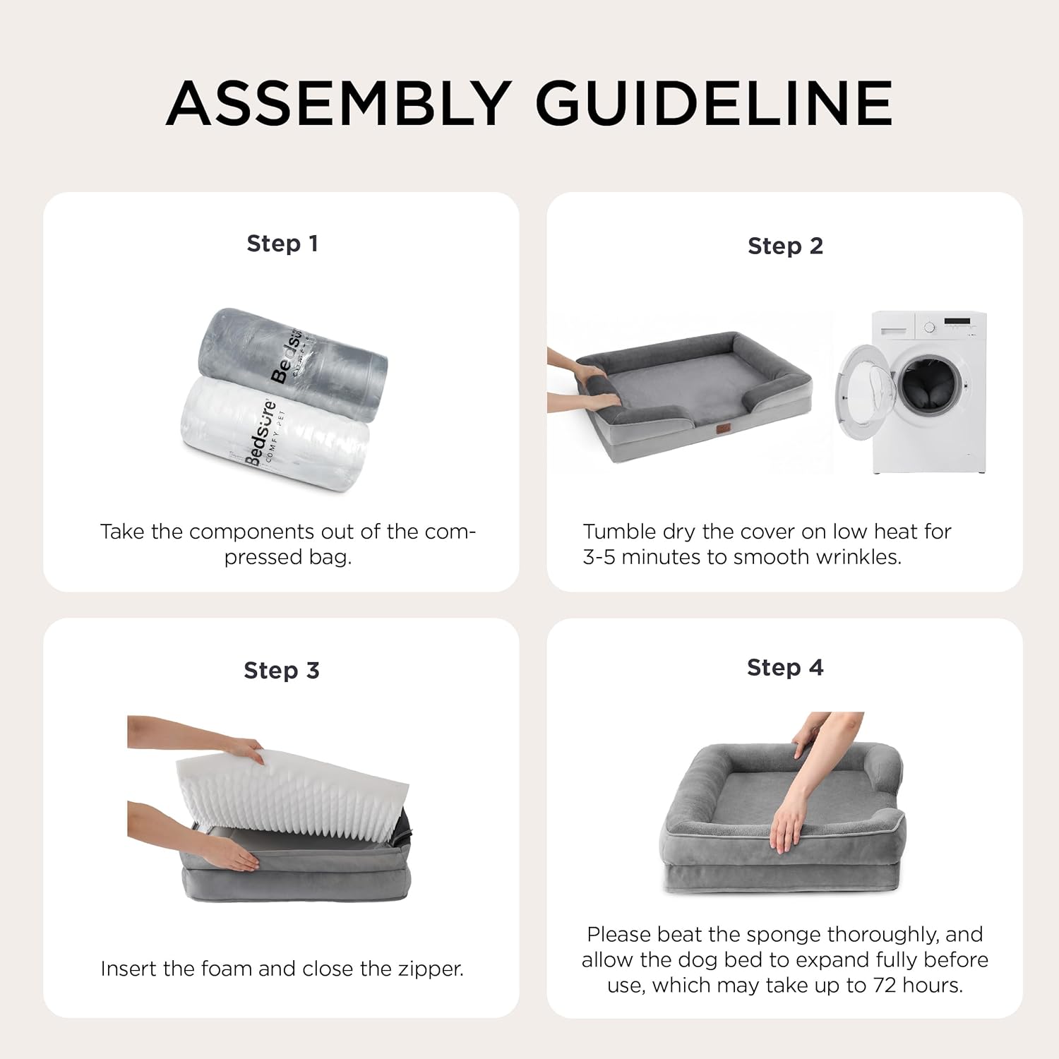 The video showcases the product in use.The video guides you through product setup.The video compares multiple products.The video shows the product being unpacked. Bedsure dog bed Merchant Video