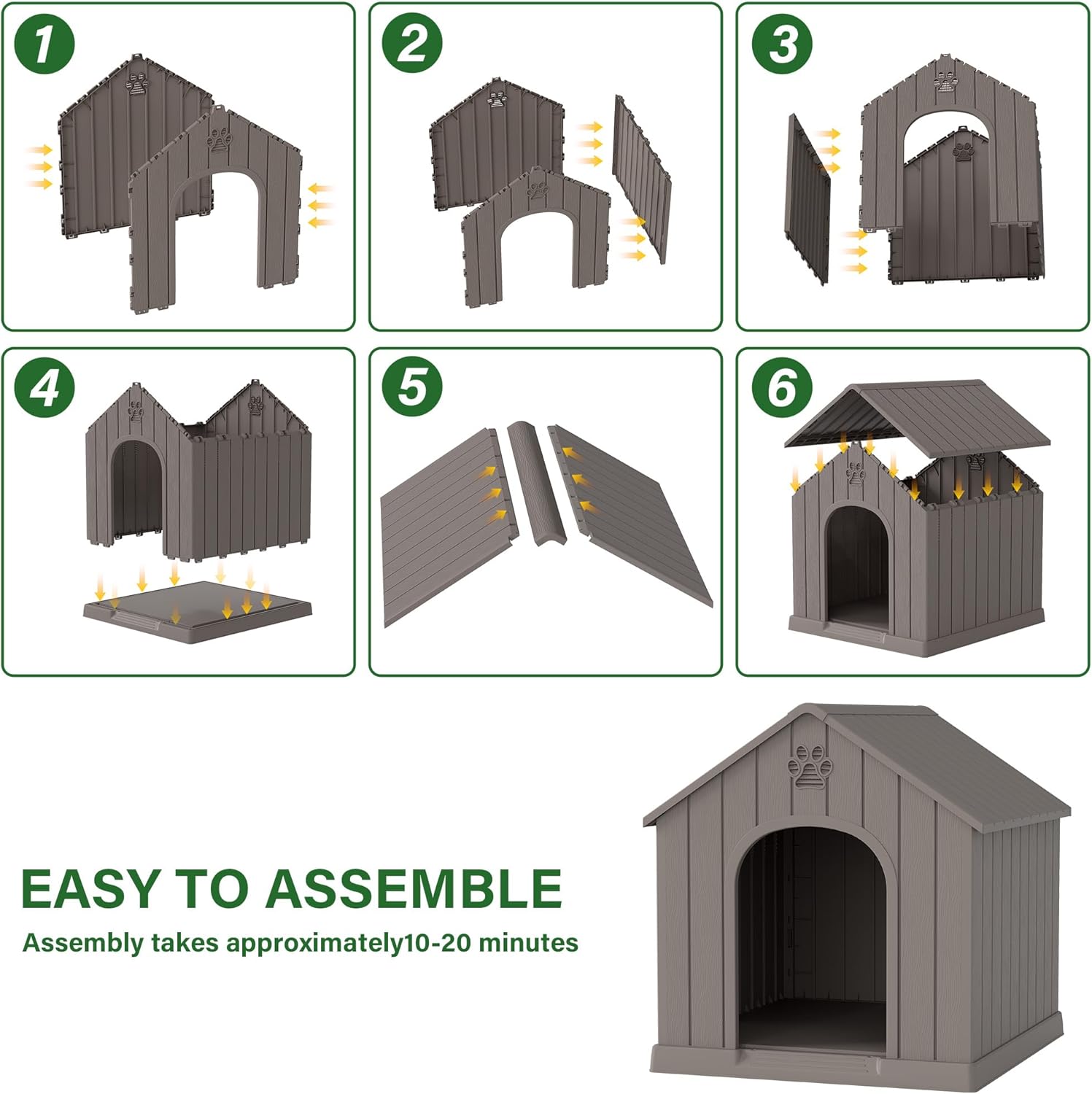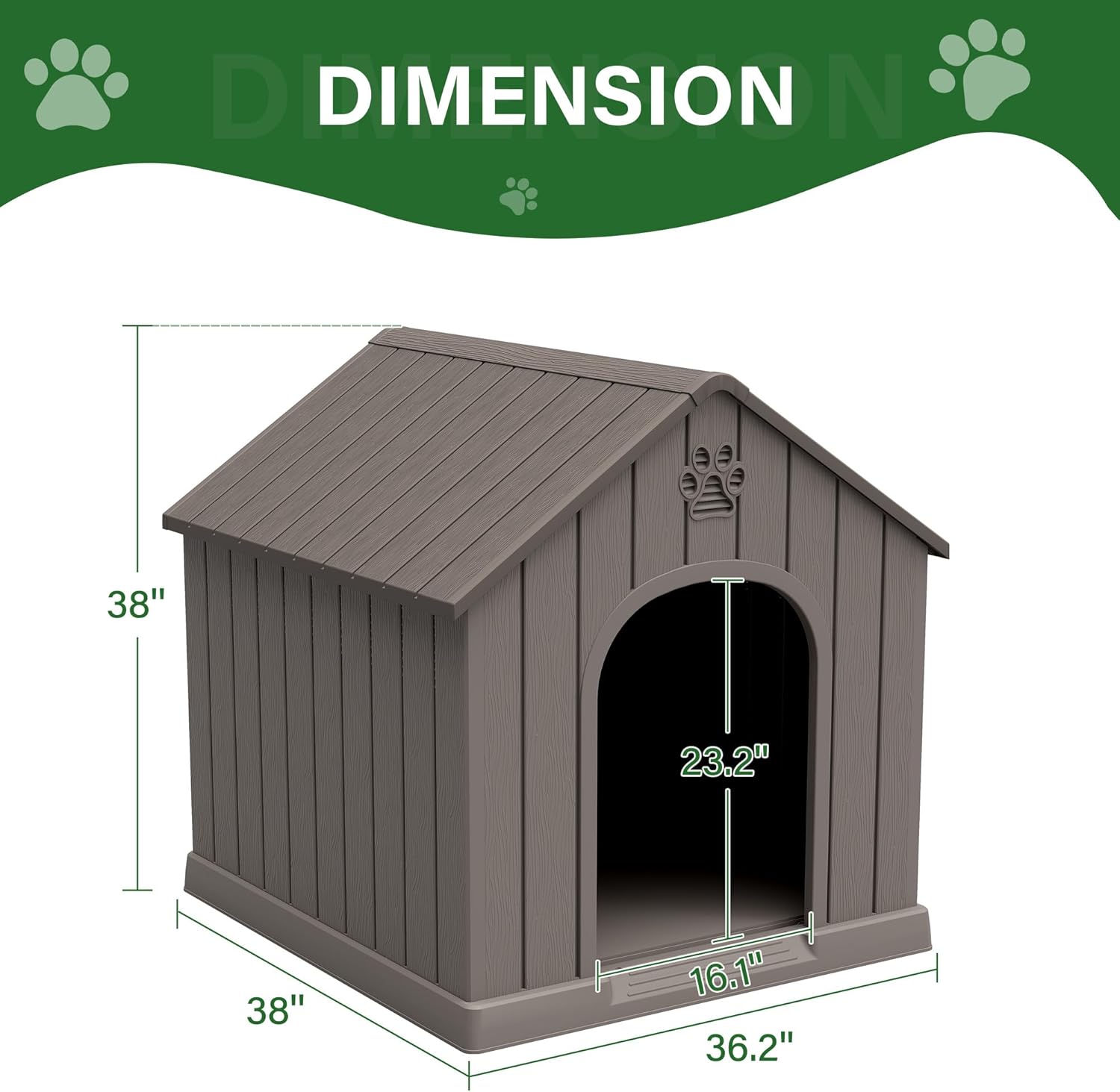 Bifanuo Large Dog House for Outdoor & Indoor, Waterproof Puppy Shelter with Air Vents & Elevated Floor, Easy Assemble Sturdy Dog Kennel for Large Dogs(Grey,36.2”L×38”W×38”H)