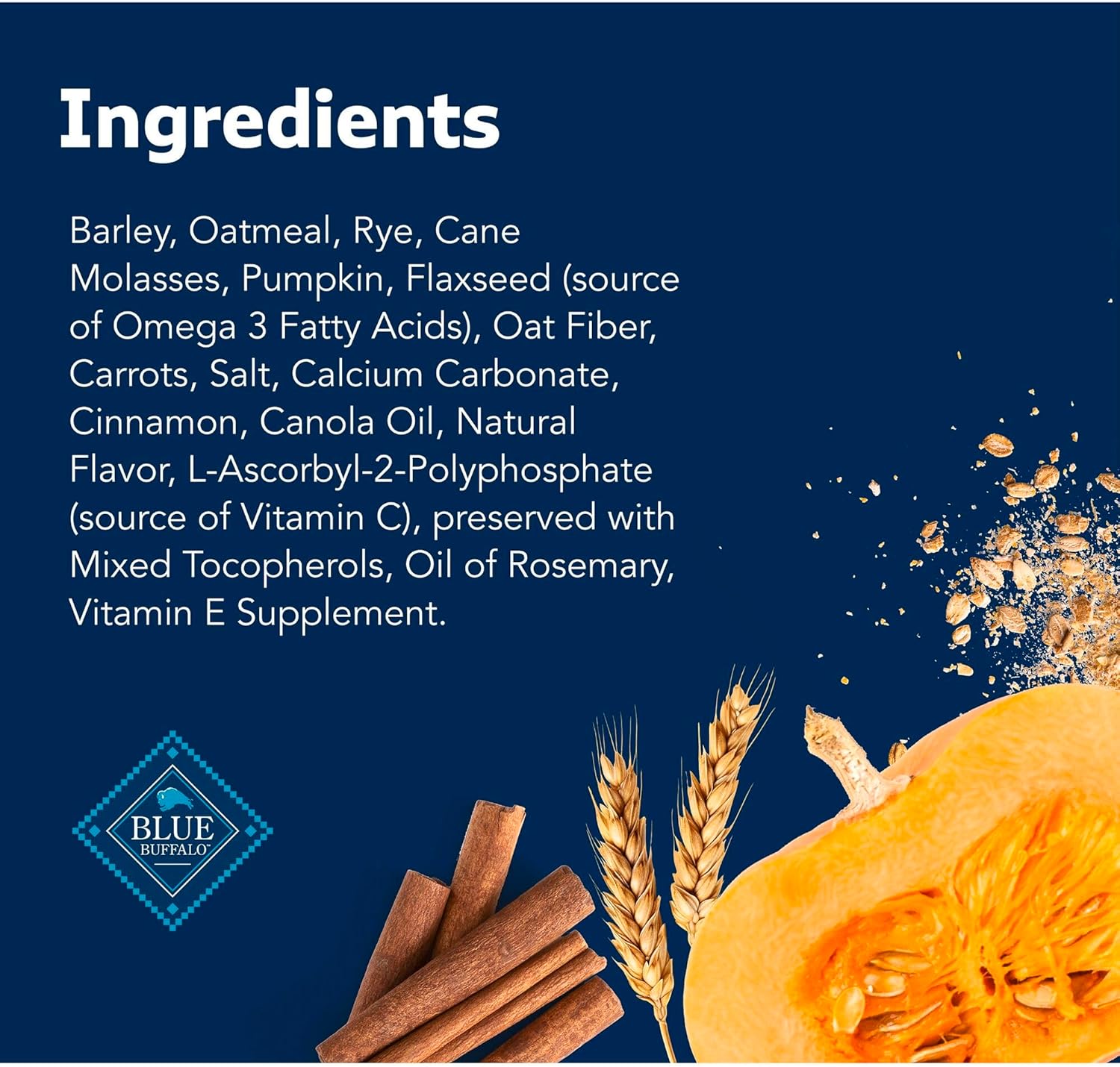Contains: One (1) 16-oz bag of BLUE Health Bars Natural Crunchy Dog Treats Biscuits, Pumpkin & Cinnamon
