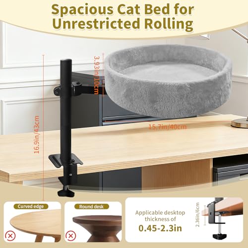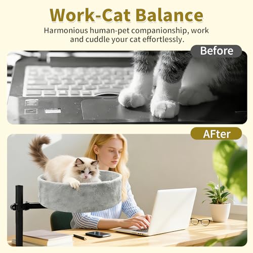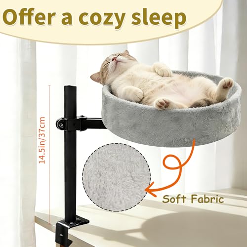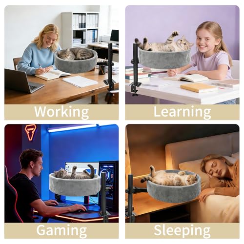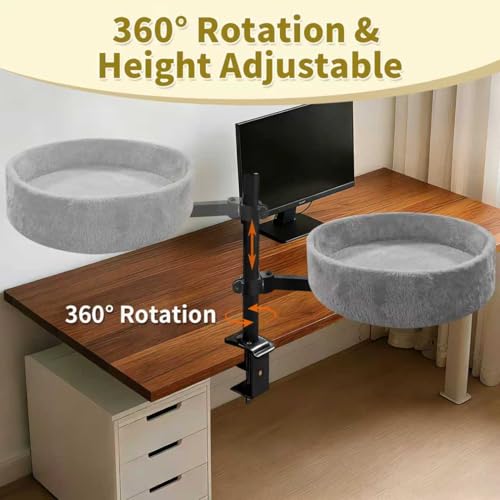 360° Rotation & Height Adjustable:This cat bed desk mount offers 360° swivel and adjustable height, seamlessly fitting desks and office setups. This cat bed swivels 360° freely, letting your cat adjust its resting posture for maximum comfort. Simply turn it toward you at the same time as working or studying to interact with your cat closely without standing up.