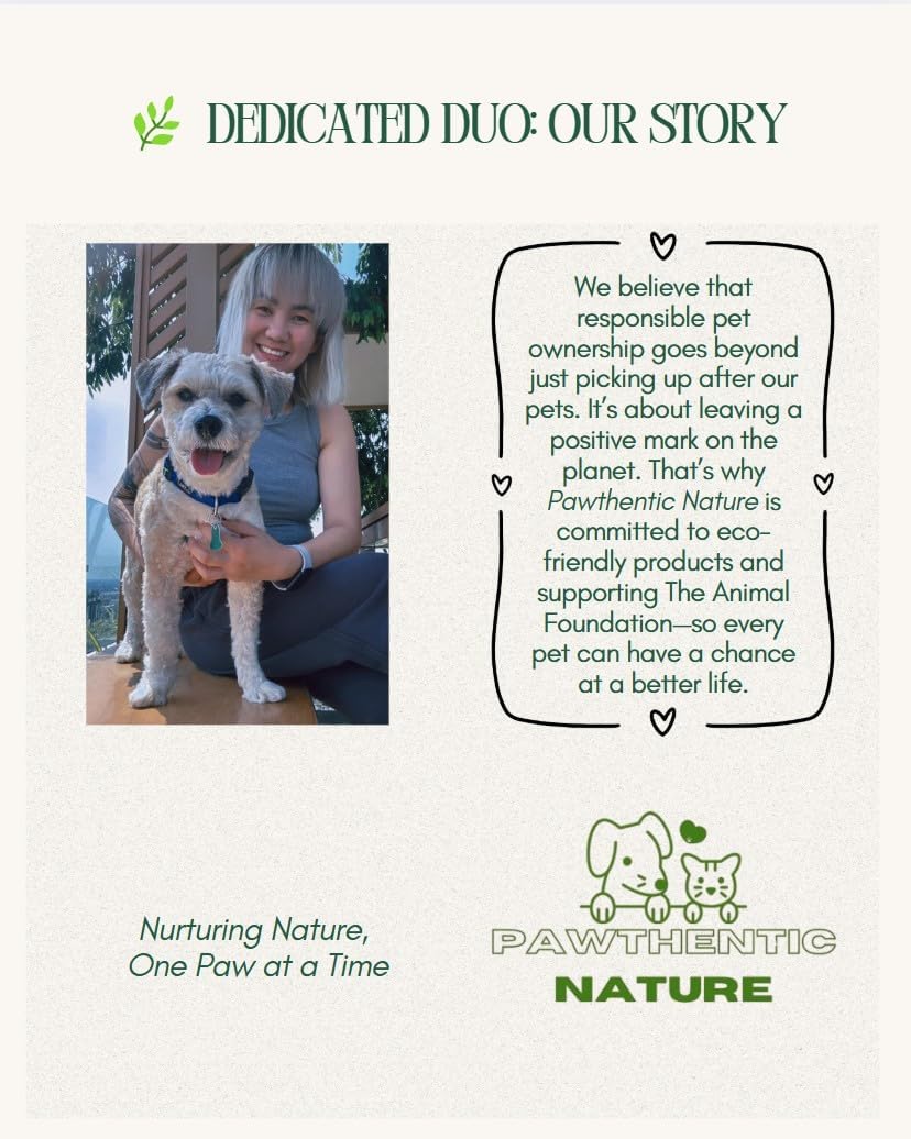 ❤ PURCHASE WITH PURPOSE – WE SUPPORT PET RESCUES: PAWTHENTIC NATURE is a small pet-loving business with a big heart. Every purchase helps us donate to The Animal Foundation’s rescue & adoption programs, so you’re not only cleaning up after your pet, but you’re also helping save another. Join us in making a pawsitive impact – for your pet, for shelter animals, and for the planet.