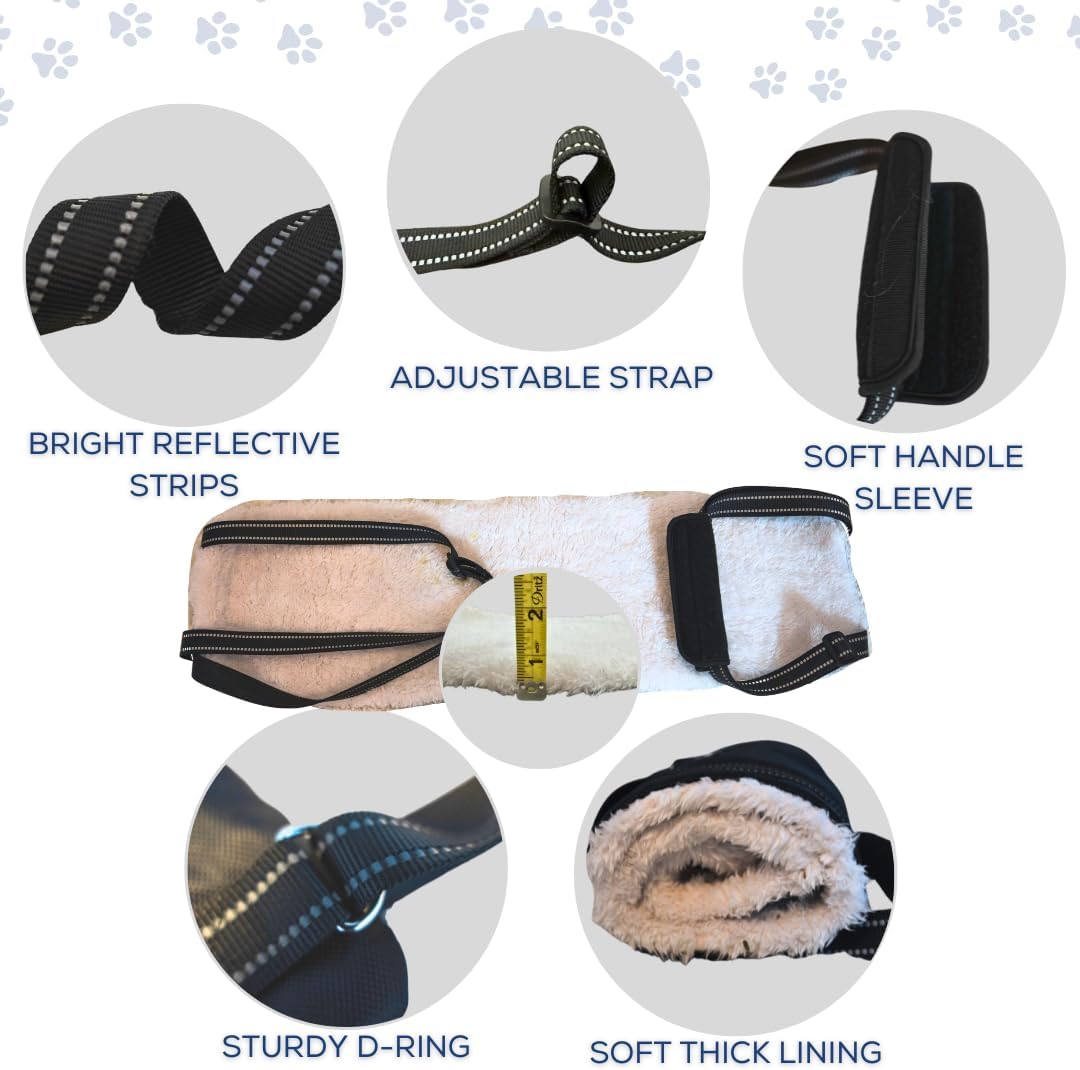 COMFORT & NO PAIN- Providing ultimate care to weak and senior dog through thickening design and soft lining with sheepskin-like covering. Moreover,the handle equipped with removable padding is perfect for protecting your hand for easy comfortable carry