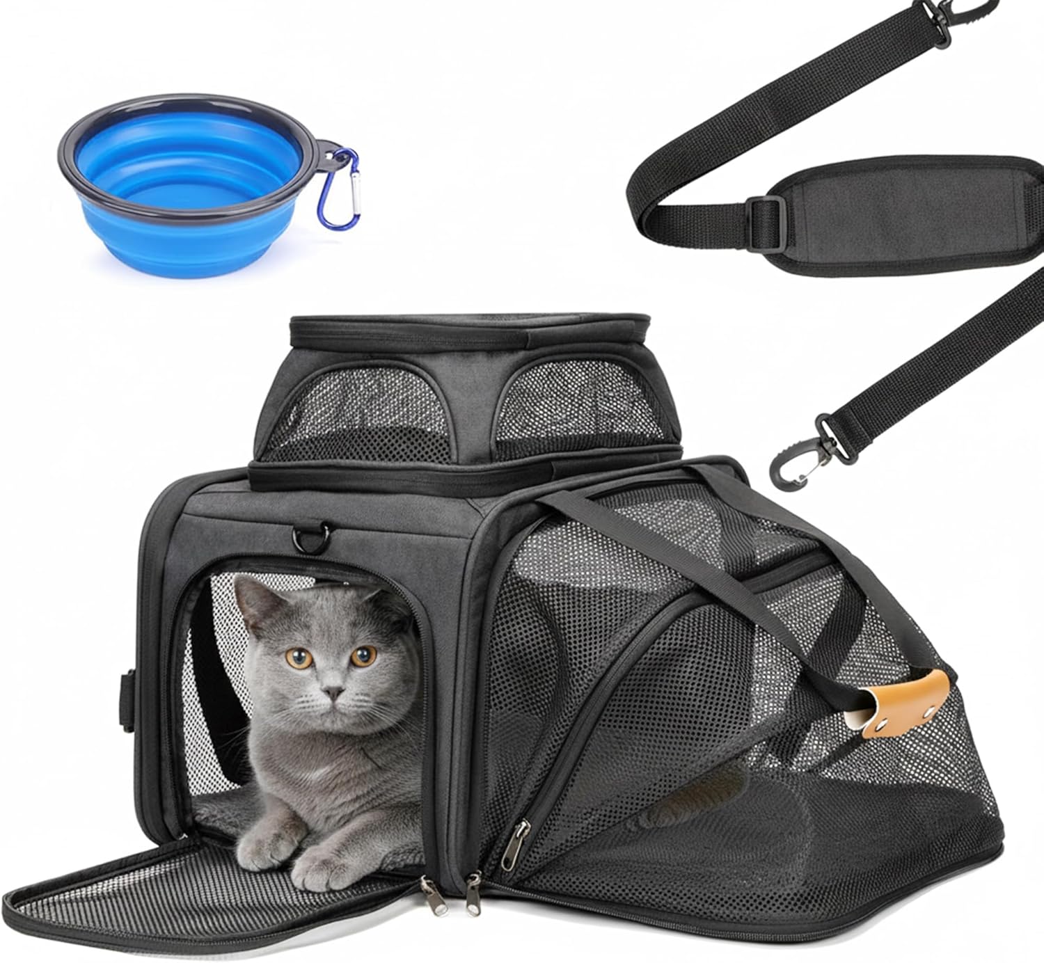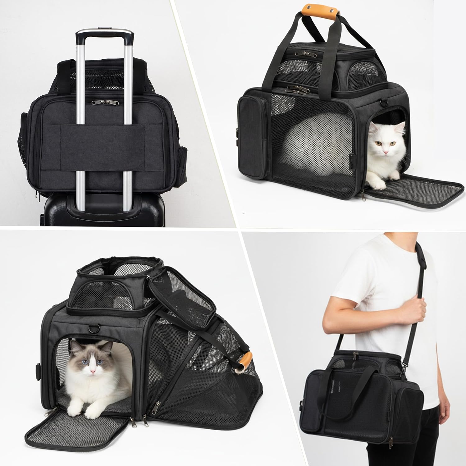 360° Breathable Mesh: Multiple mesh panels for ventilation, visibility, and anxiety reduction. The top opening design allows you to observe and comfort your pet at any time.