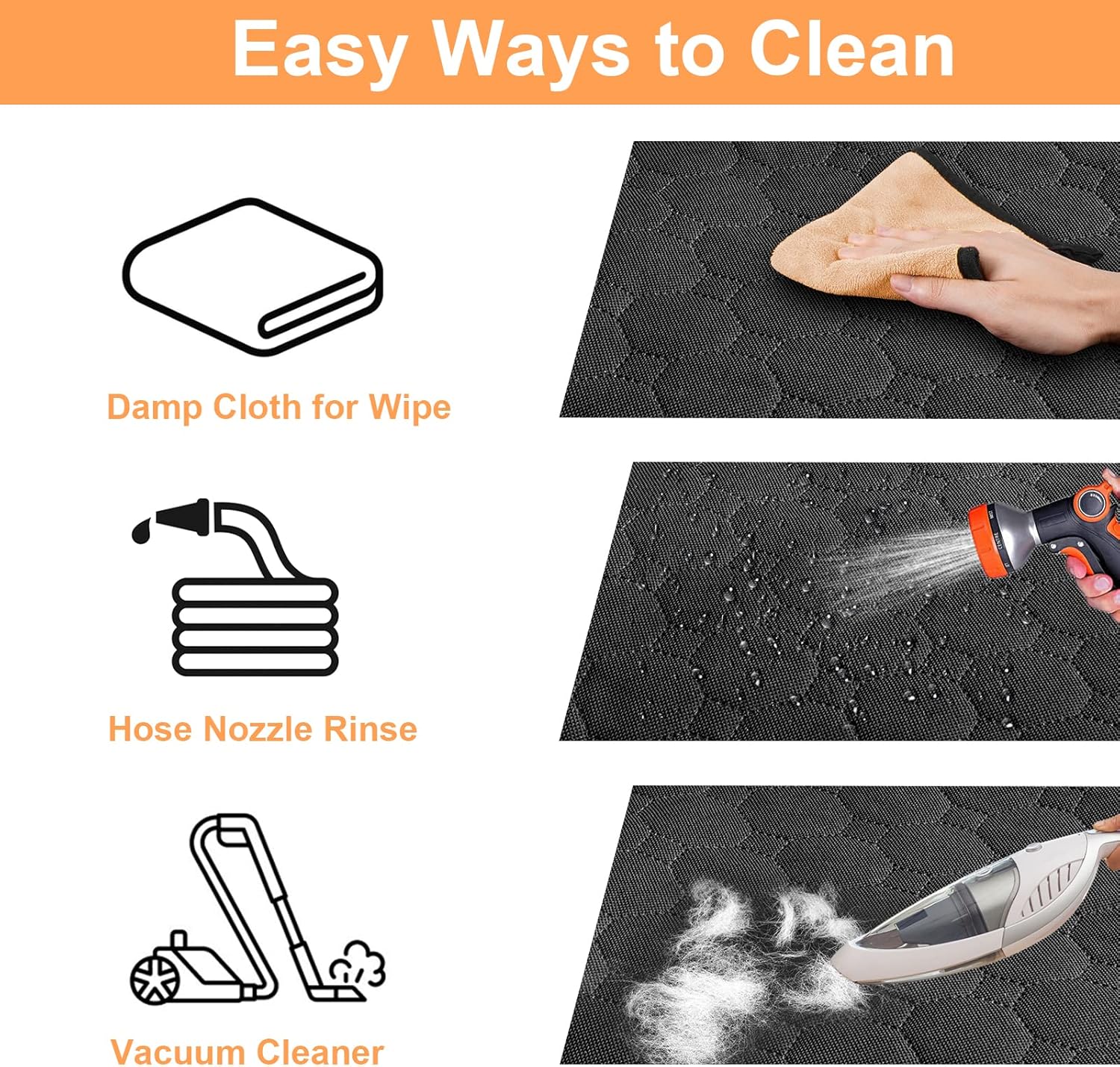 Easy Install and Clean: Just takes seconds to remove or install the dog back seat cover. You can learn how to install it quickly by watching our video. Tired of massive hair, liquid, and dirt? Easy to clean with a damp cloth or vacuum. The back seat pet cover for dogs is great gifts for every pet lover
