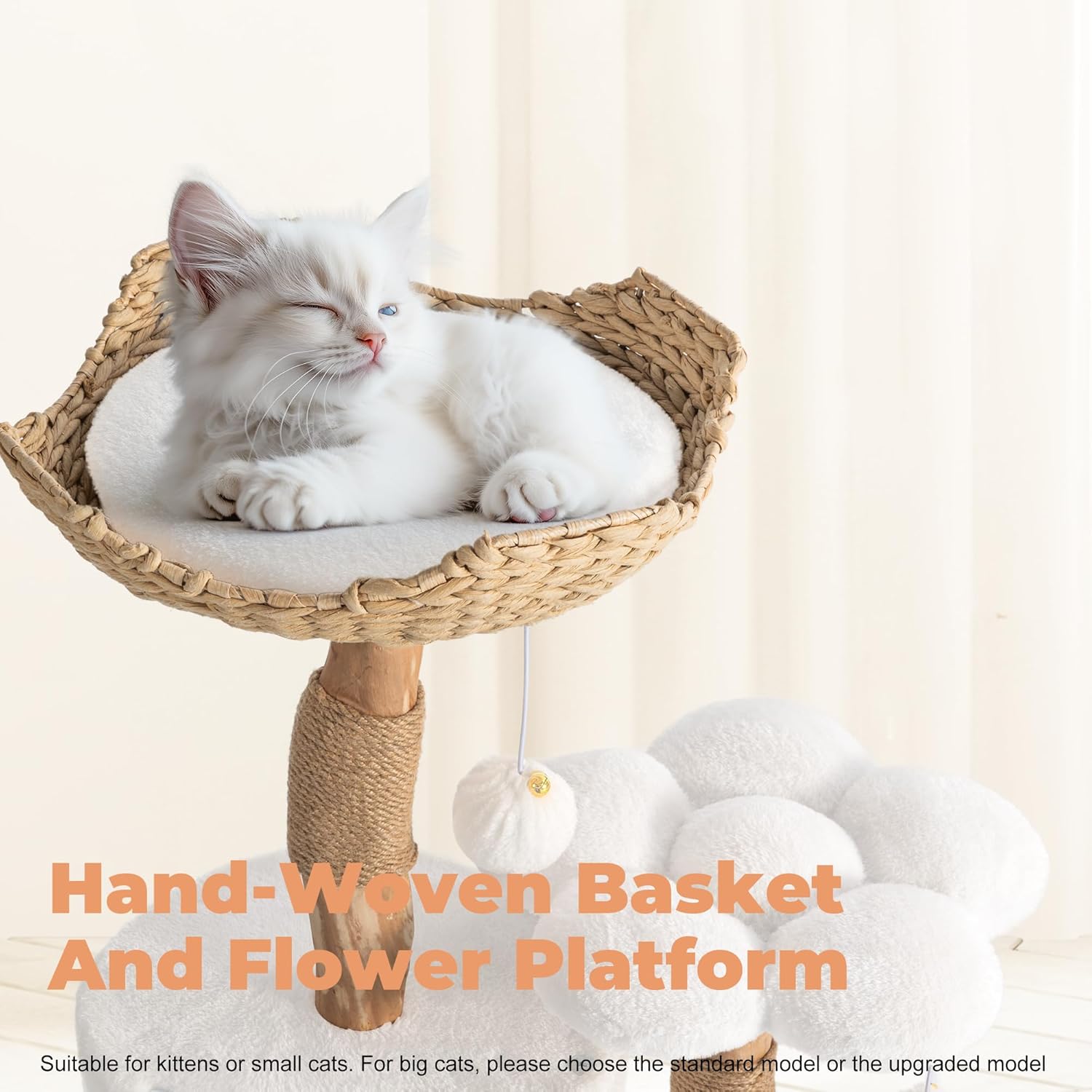 What Will You Receive & Easy To Assemble : Hand-Woven Basket *1,Cat Condo *1,Cat Condo Base Fixed Board *1, Flower Platform *1,All-Season Mats *2,Scratching Posts *2,Furry Balls *2, With these, you can assemble a modern cat furniture to decorate and beautify your home