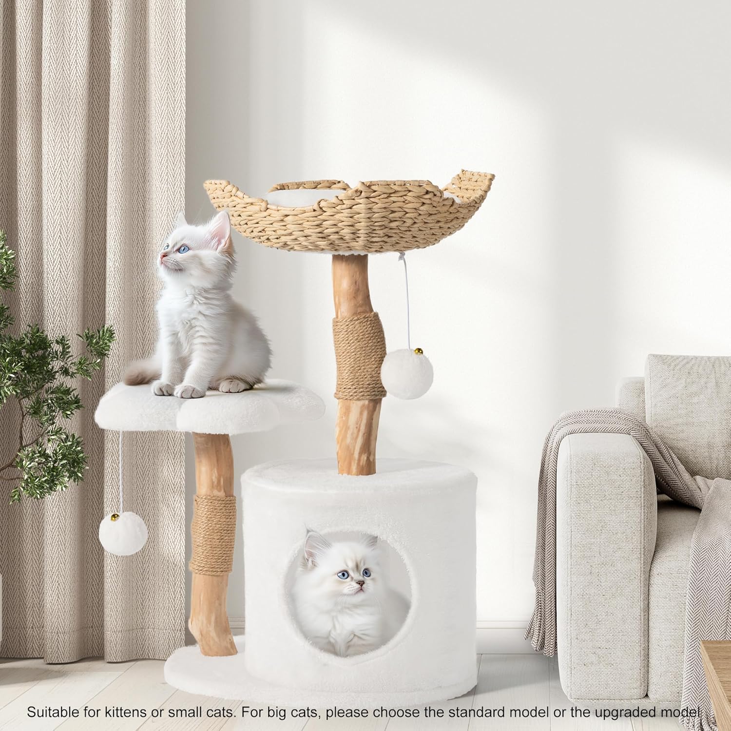 Sturdy & Solid Wood Cat Tree : Modern cat furniture made of 100% natural solid pear wood that will last for many years! Every cute aesthetic cat tree is unique. Besides,For large cats weighting up to 28 Pounds,or even multiple cats