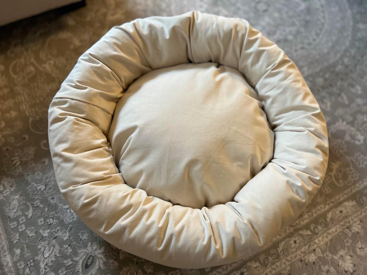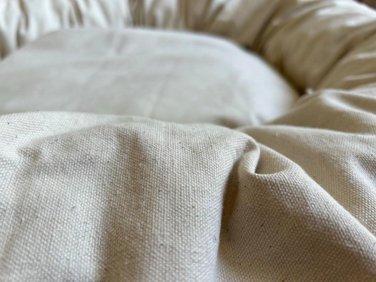 Only natural materials. YKK zippers. Custom sizes available by request. Give your dog a naturally comfortable place to rest with this Natural Cotton Canvas Dog Bed, thoughtfully made for pet parents who value simplicity, sustainability, and everyday durability. Designed with a supportive round shape and filled with raw, untreated cotton, this bed offers a cozy, breathable surface for lounging, curling, and napping. The outer cover is crafted from durable natural cotton canvas, providing a soft yet sturdy texture that holds its shape while blending seamlessly into modern, minimalist, or eco-inspired homes. Inside, the raw cotton filler delivers gentle cushioning with natural breathability—free from synthetic foams, harsh chemicals, or artificial fillers. This dog bed is ideal for daily indoor use, whether placed in a living room, bedroom, crate area, or favorite nap spot. Its supportive bolster-style design helps dogs feel secure while resting, making it suitable for puppies, adult dogs, and senior pets who enjoy a softer, more natural sleep surface. Perfect for pet owners seeking a plastic-free, low-tox living option, this bed pairs comfort with conscious material choices for a healthier home environment.