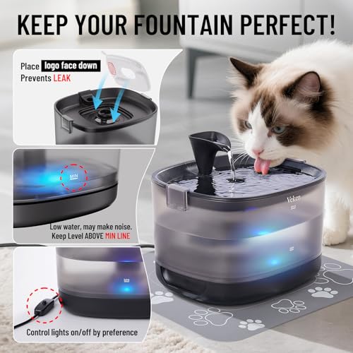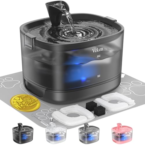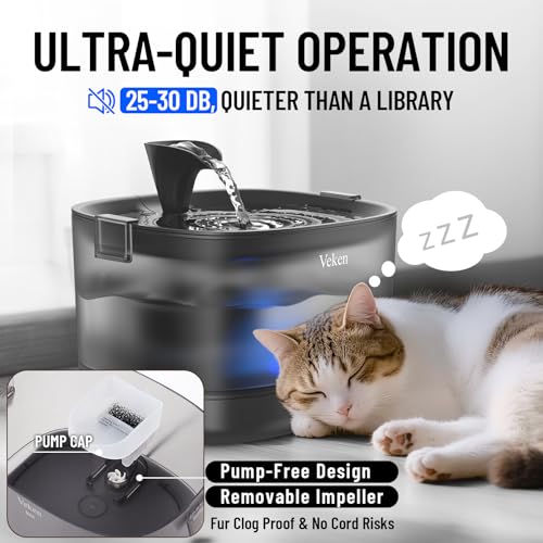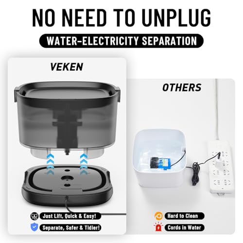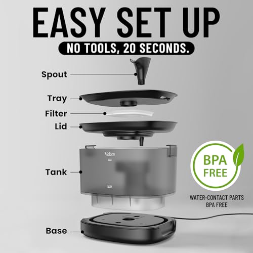 Veken Cat Water Fountain with Detachable Tank & Secure Clips, Easy to Clean & Assemble, 84oz/2.5L Pet Drinking Dispenser with Quiet Operation & LED Light, Gifts, Cats, Dogs and Small Pets, Black