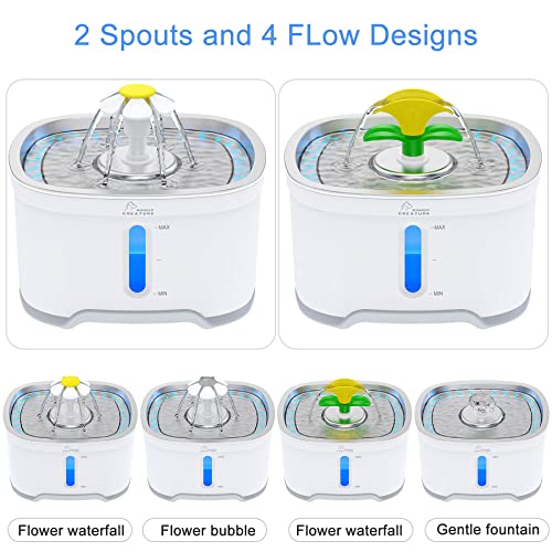 2 spouts and 4 modes: A source of running water encourages pets to drink more rather than still water. This fountain has 2 spouts and 4 different drinking modes. It provides more options for your pets and attracts them to drink more water.